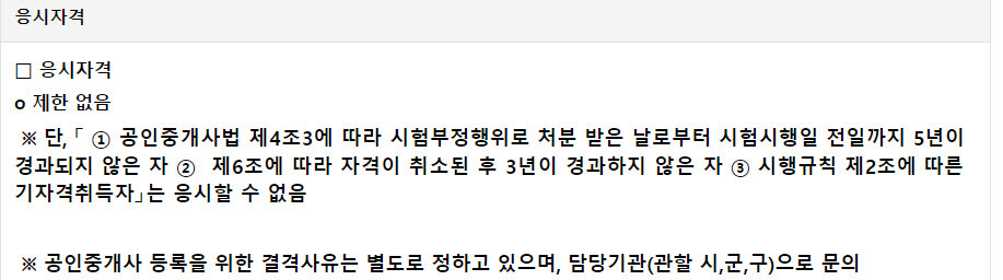 공인중개사 시험은 특별한 자격 요건이 없습니다. 단 제한 사항이 있으니 확인 바랍니다.